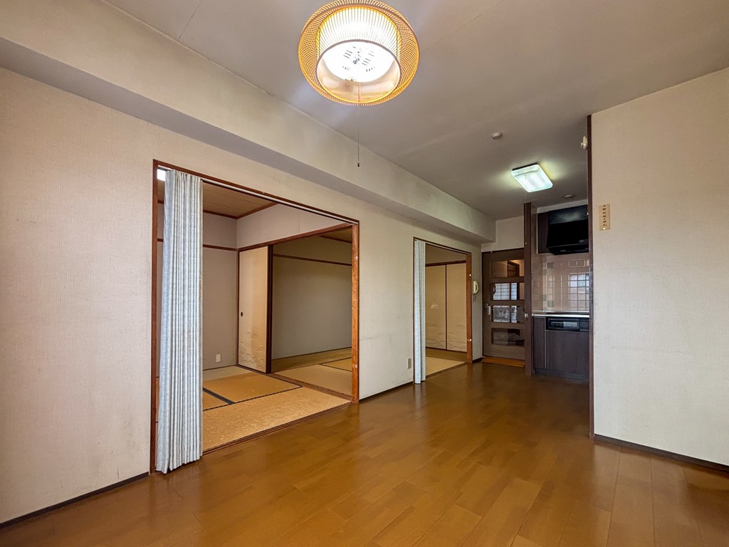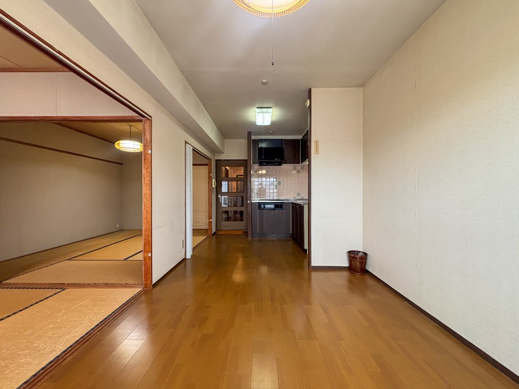 LDKは縦長9.7畳。隣は続き間の和室で広く感じます。