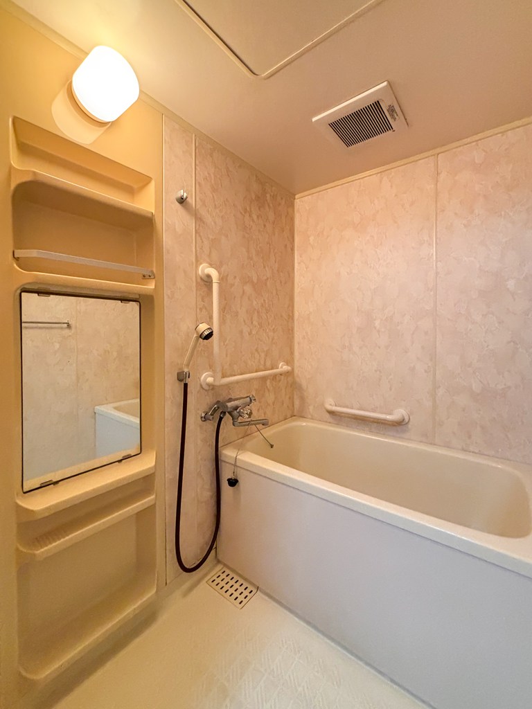 狭さを感じさせない、日々の疲れを癒す清潔感のあるバスルーム。