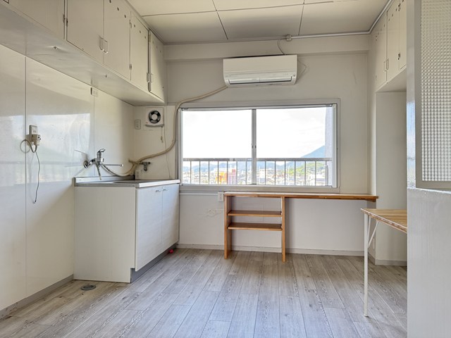 - 白でまとめられたダイニングキッチンは清潔感があり明るいです。