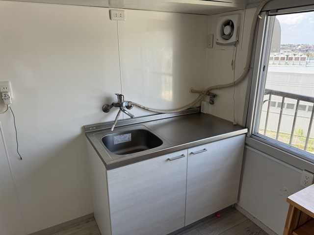 - かわいいサイズのミニキッチン。窓もあり換気も出来ます。