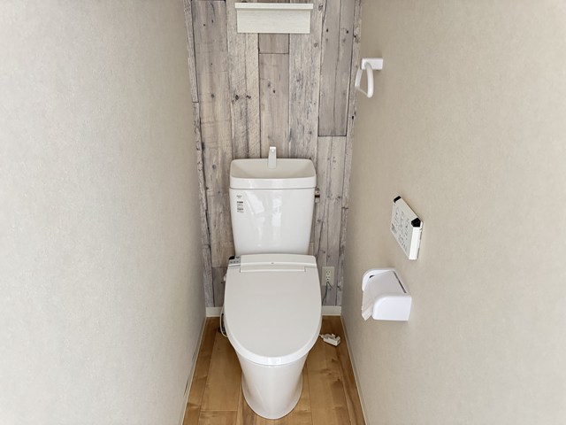 - アクセントクロスが施工されたトイレは温水洗浄便座付です。