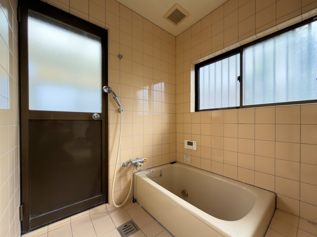 - 浴室には小窓と差し掛けに出れるドアがあります。