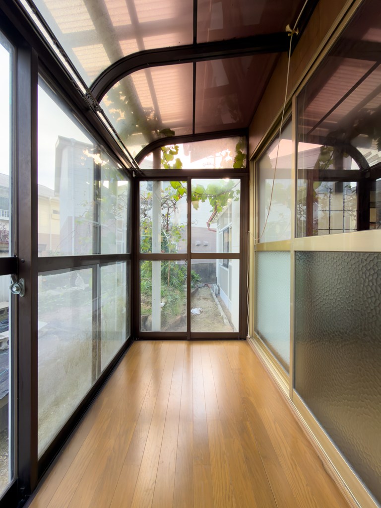 - 多種多様に使える差し掛け。リビング、浴室、和室からの出入りが可能。