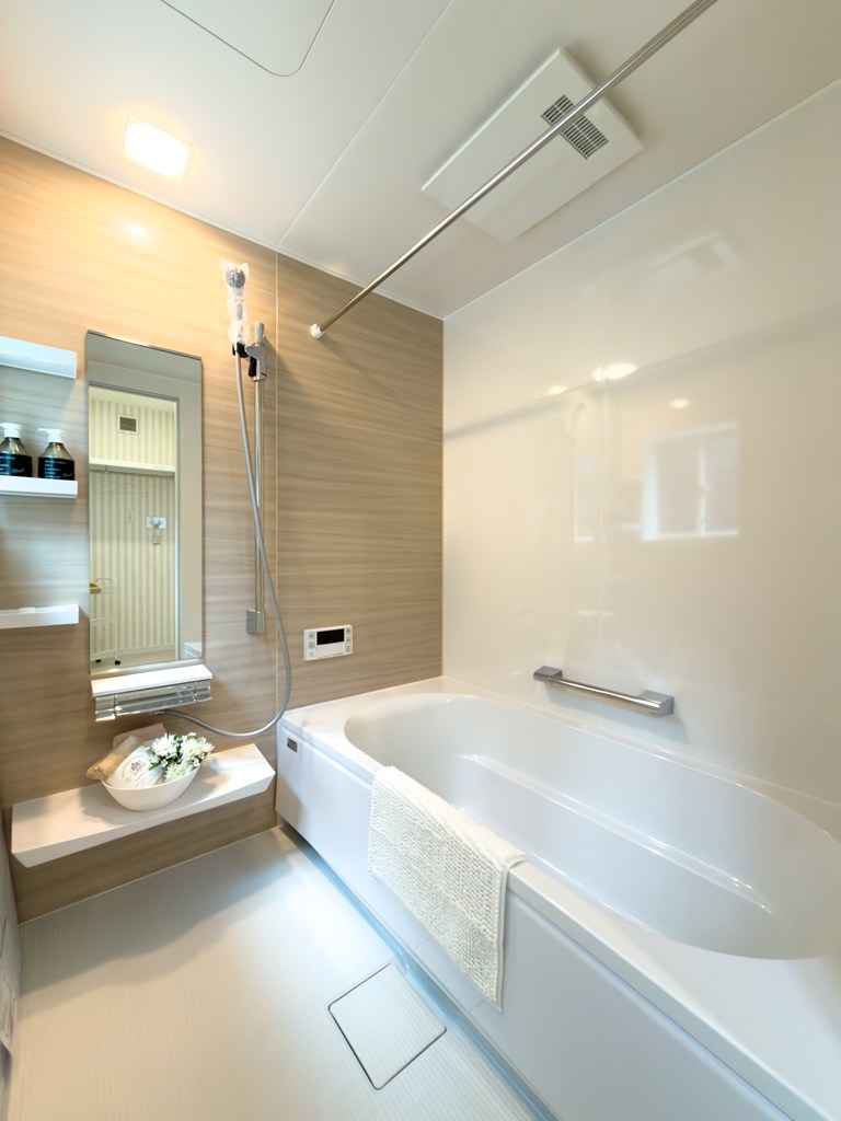 浴室には、ウルトラファインバブル給湯器を採用♪マイクロバブルによって白く濁ったお湯が全身を包み込みます♪また、汚れが染みにくいお手入れ簡単なホーロークリーンパネルを採用♪