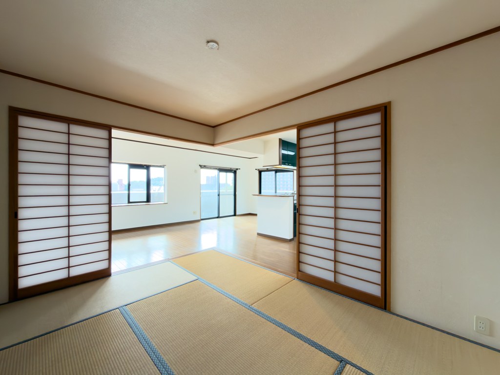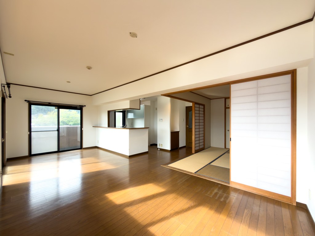- 15.5帖のリビングダイニングと繋がる和室は広々と使えます。
