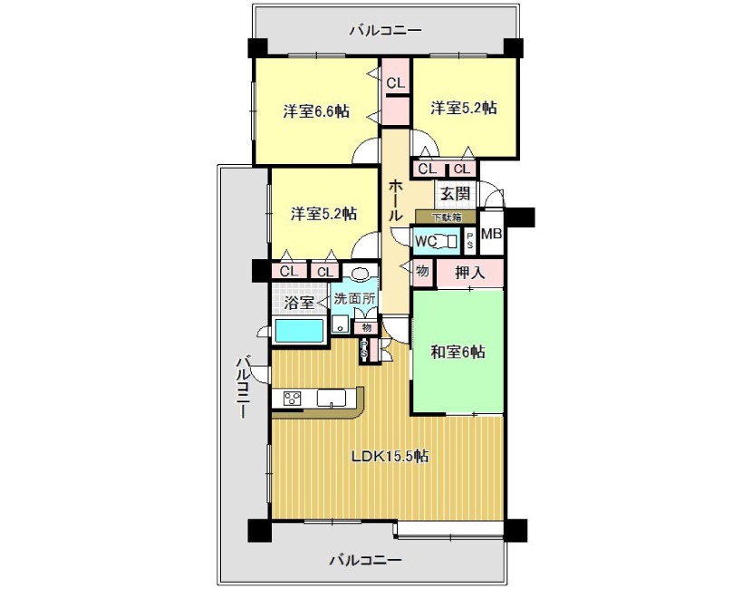 - 広々使える4LDK♪3面採光バルコニーでお部屋が明るいです。