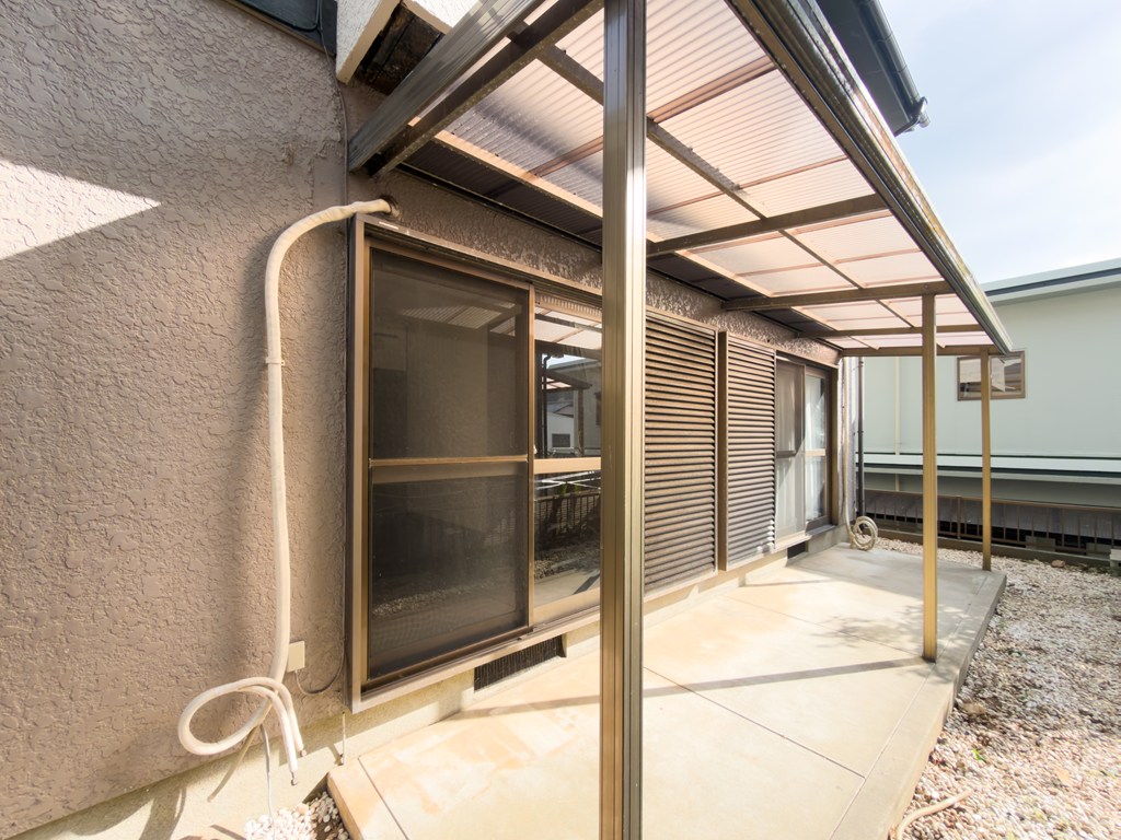 急な雨でも安心の差し掛けが付いた物干しスペースです。