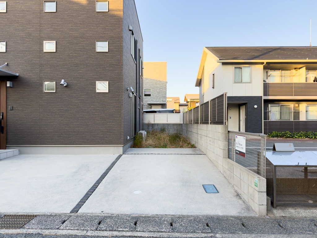 並列で2台駐車可能なゆとりのスペース♪前面道路の交通量が少なく、車の出し入れもしやすい環境です♪