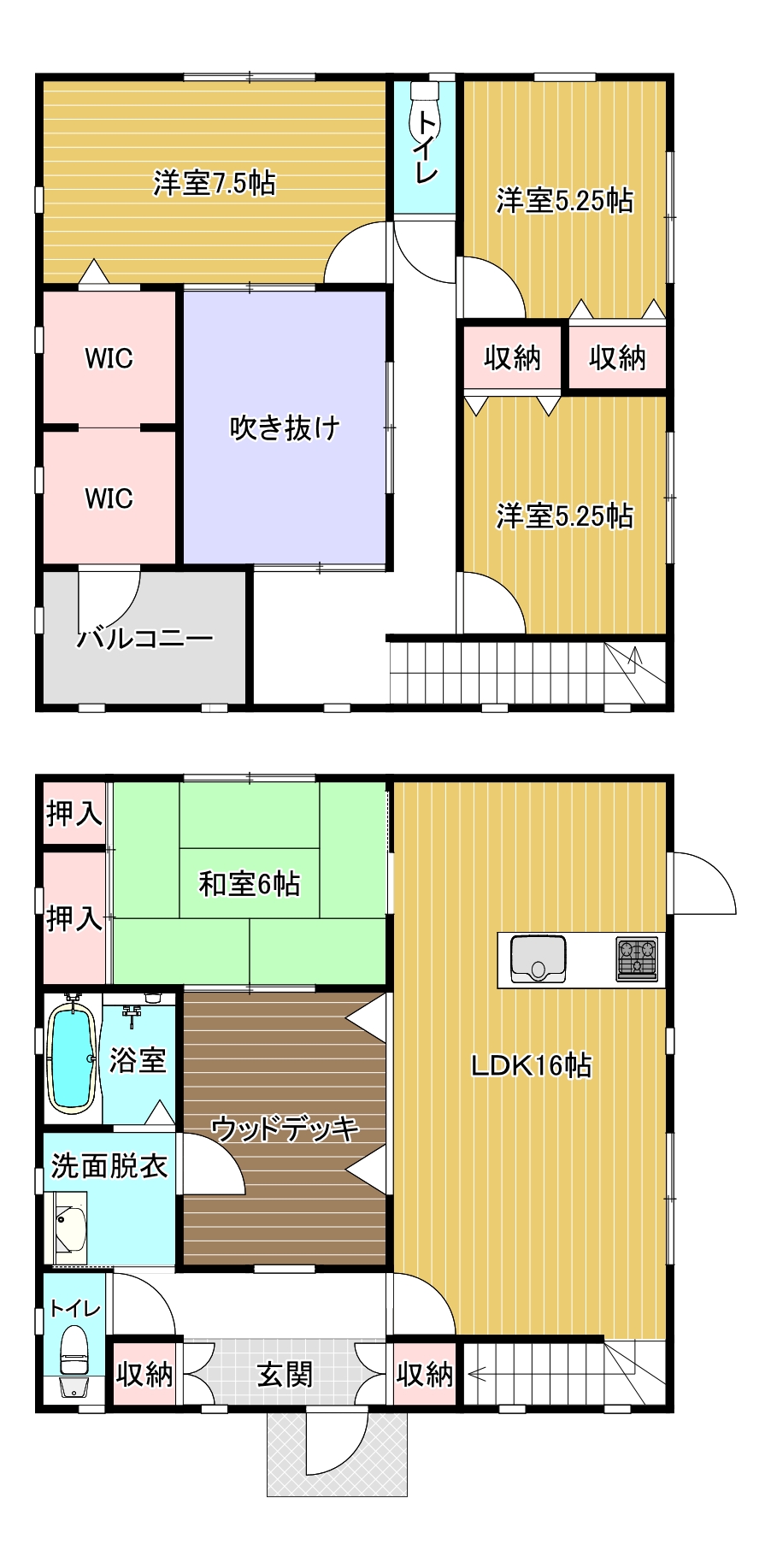 | 備考 | *中国電力、上下水道、都市ガス ◆担当者おすすめポイント POINT1 玄関を入るとウッドデッキが広がり、ほっと落ち着く空間に♪ POINT2 2台駐車可能なゆとりの外構で、ファミリー層にもぴったり♪ POINT3 ウォークインクローゼットを2か所に配置し、収納量と使いやすさを兼ね備えています♪ POINT4 屋外バルコニー付きで洗濯や日向ぼっこにも便利です♪ POINT5 16帖LDK+吹き抜けの開放感♪ |