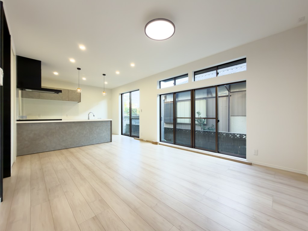 約16畳のLDKは掃き出し窓が2箇所あり、日中は自然光がしっかり差し込む明るい空間。風通しも良く、家族が心地よく過ごせるリビングです♪