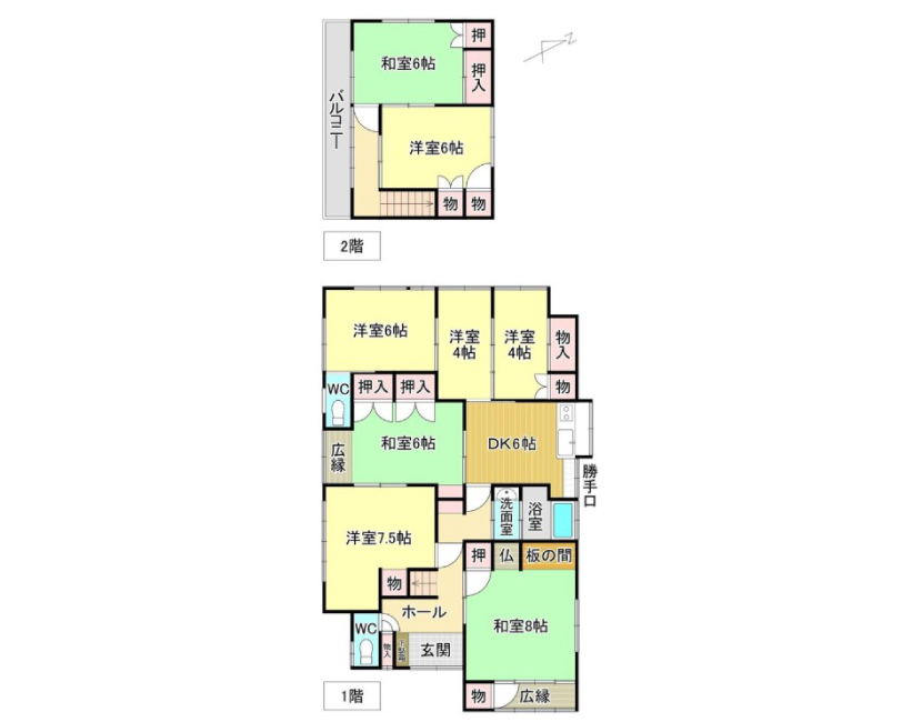 和室・洋室ともにバランスよく配置され、ファミリーにもおすすめ8DKです。