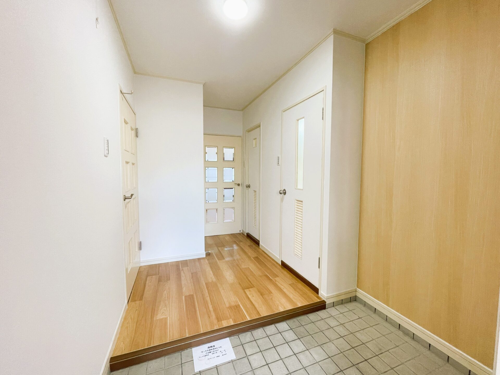- 玄関周辺の壁紙を一新。明るい雰囲気に仕上がりました。