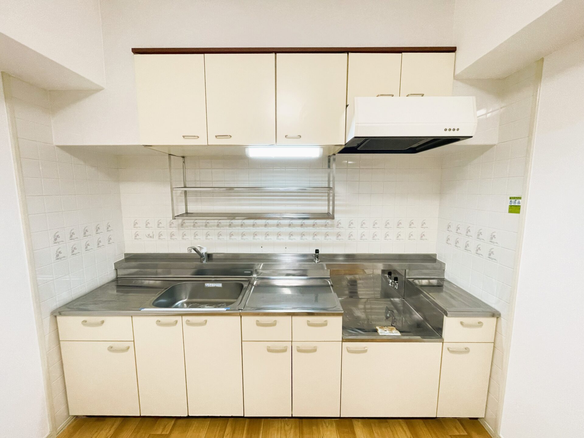 - 壁付けタイプのキッチン。水栓交換済、クリーニング済です。