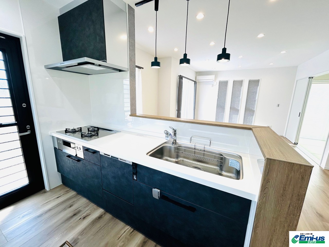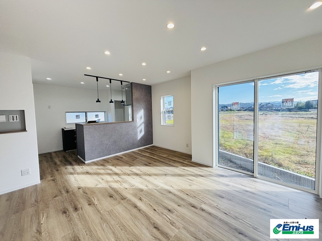 カウンターキッチンで見通しの良いリビングは家族とのコミュニケーションも取りやすいです♪