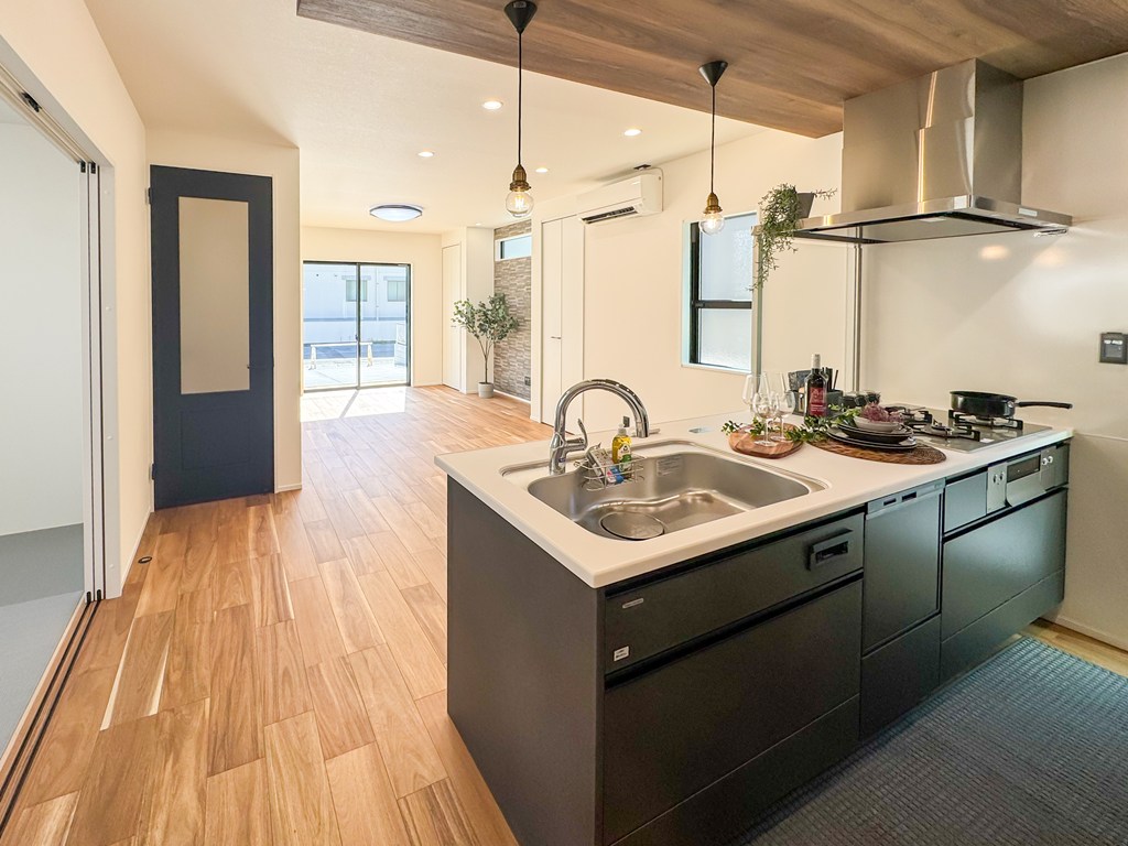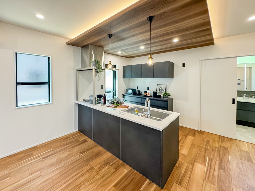 お手入れのしやすい水回り。暮らしをラクにする最新設備を取り入れたこだわりのお家です。キッチンは開放感あるオープンキッチン♪お料理をしながらリビングを見渡せます。