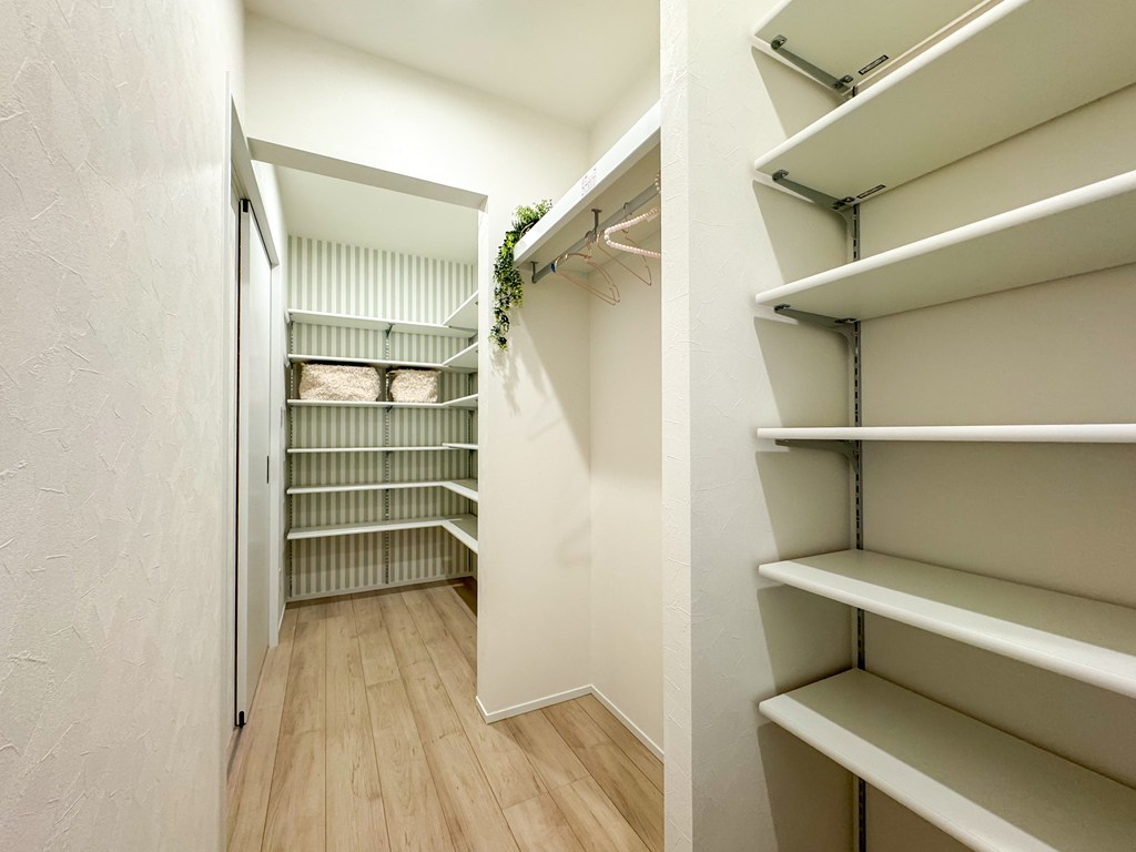 玄関ホールからキッチンへ続く大容量の収納!主寝室にはウォークインクローゼットを完備。