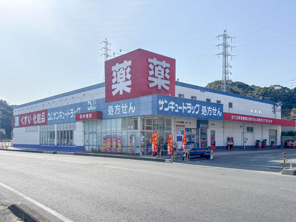 サンキュードラッグまで徒歩約2分、小児科、コンビニなども近く暮らしやすい立地。