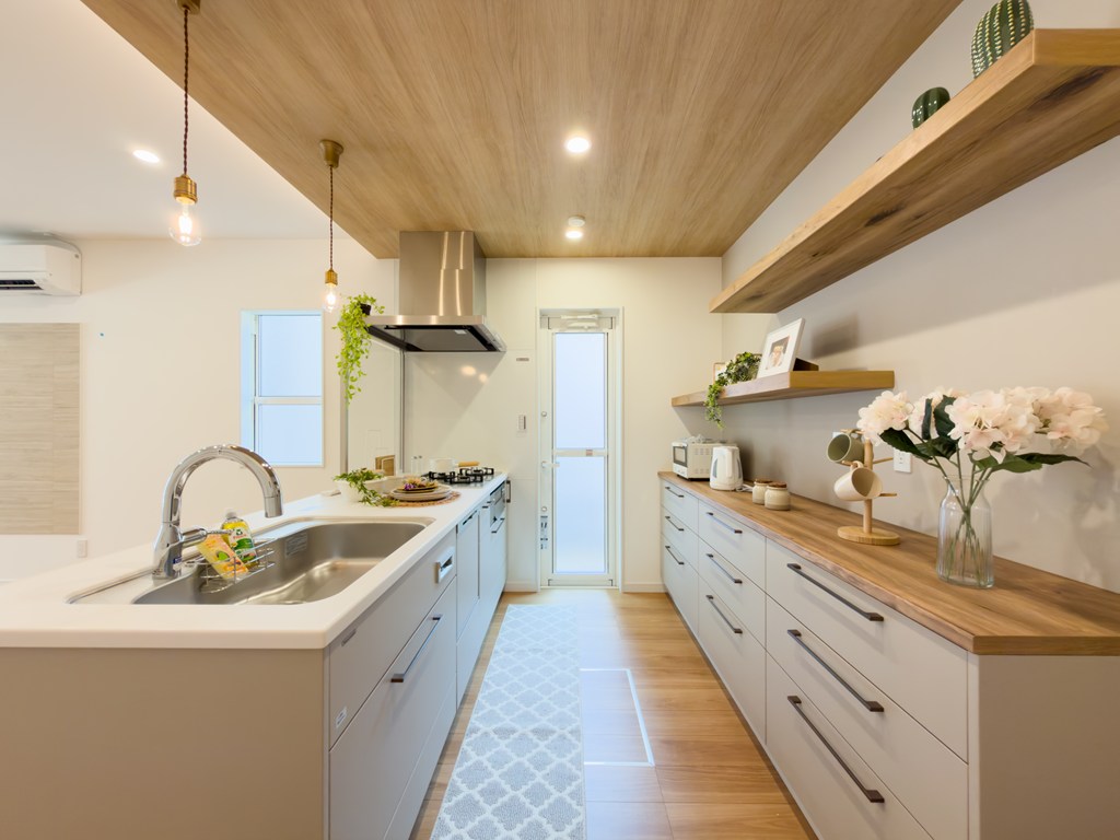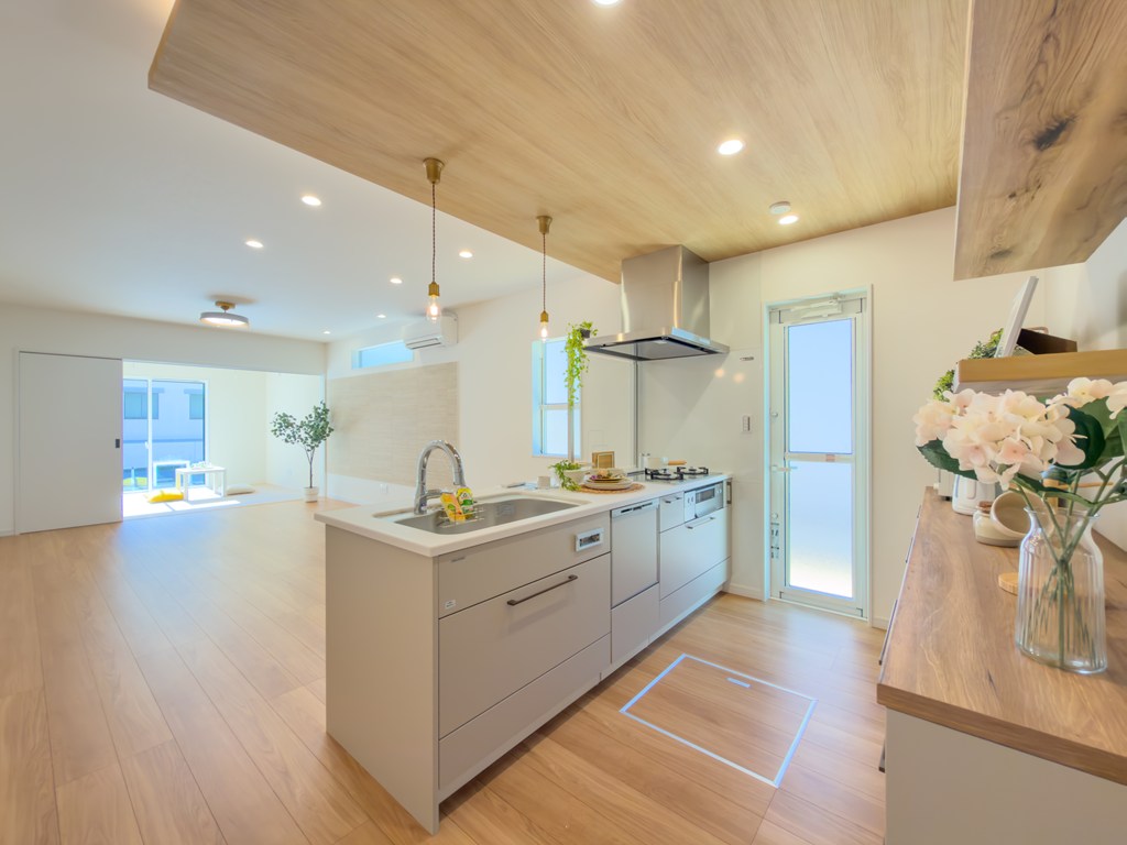 お手入れのしやすい水回り。暮らしをラクにする最新設備を取り入れたこだわりのお家です。キッチンは開放感あるオープンキッチン♪お料理をしながらリビングを見渡せます。