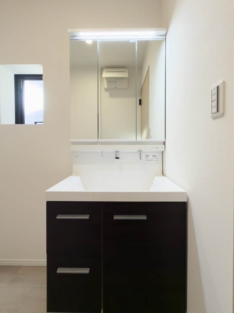 お手入れのしやすい水回り。暮らしをラクにする最新設備を取り入れたこだわりのお家です。対面キッチンでお料理をしながらリビングを見渡せます。