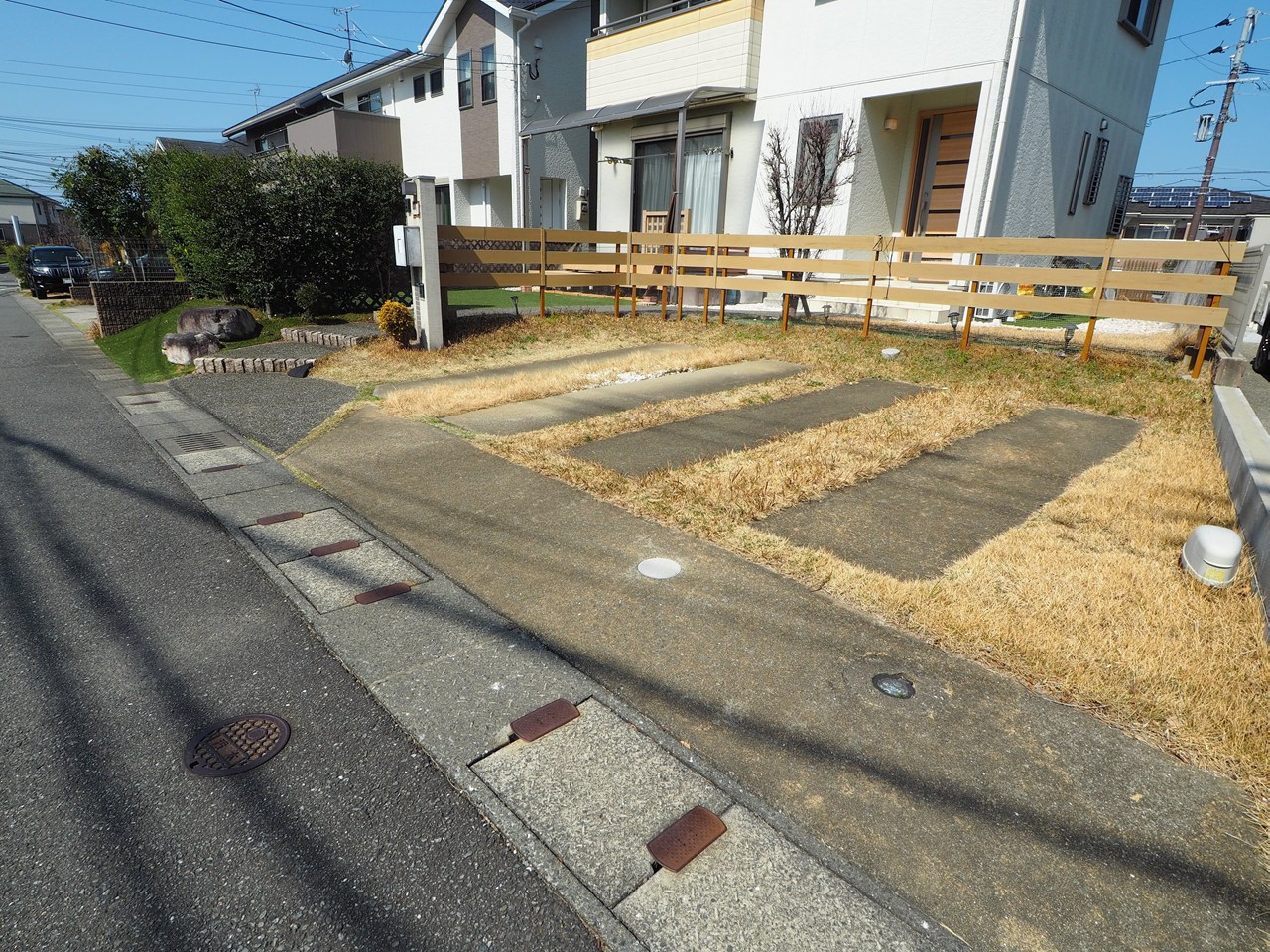 ■現況並列駐車2台ですが簡易な加工で4台駐車可能。